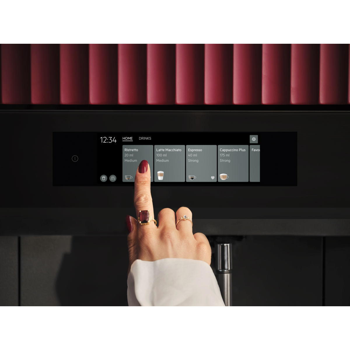Une machine à café encastrable dotée d’un grand écran tactile pour une utilisation fluide. Profitez d’une sélection d’expressos et d’autres boissons chaudes préparées à votre goût.
