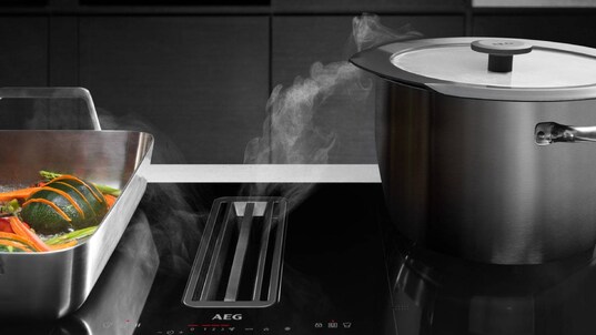 En optant pour le modèle de table de cuisson AEG combinée à une hotte aspirante, vous bénéficiez d’un appareil révolutionnaire qui vous donne la possibilité de cuisiner encore plus efficacement. Alors qu’une table de cuisson classique et une hotte aspirante séparée prennent beaucoup de place dans une cuisine, cette table de cuisson avec hotte intégrée d’AEG vous offre l'équilibre parfait entre une multitude de possibilités et un design élégant.