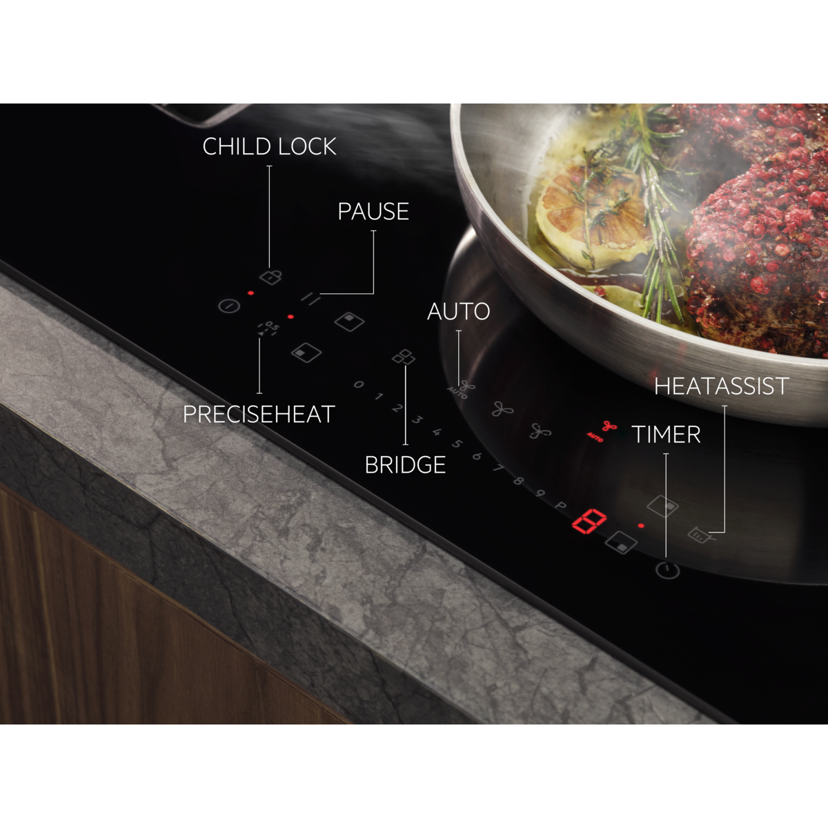 La fonction Bridge vous permet de relier deux zones de cuisson distinctes pour créer une grande zone de cuisson. La chaleur est ainsi répartie uniformément sur toute la surface, ce qui est idéal pour les grandes casseroles ou les planchas.