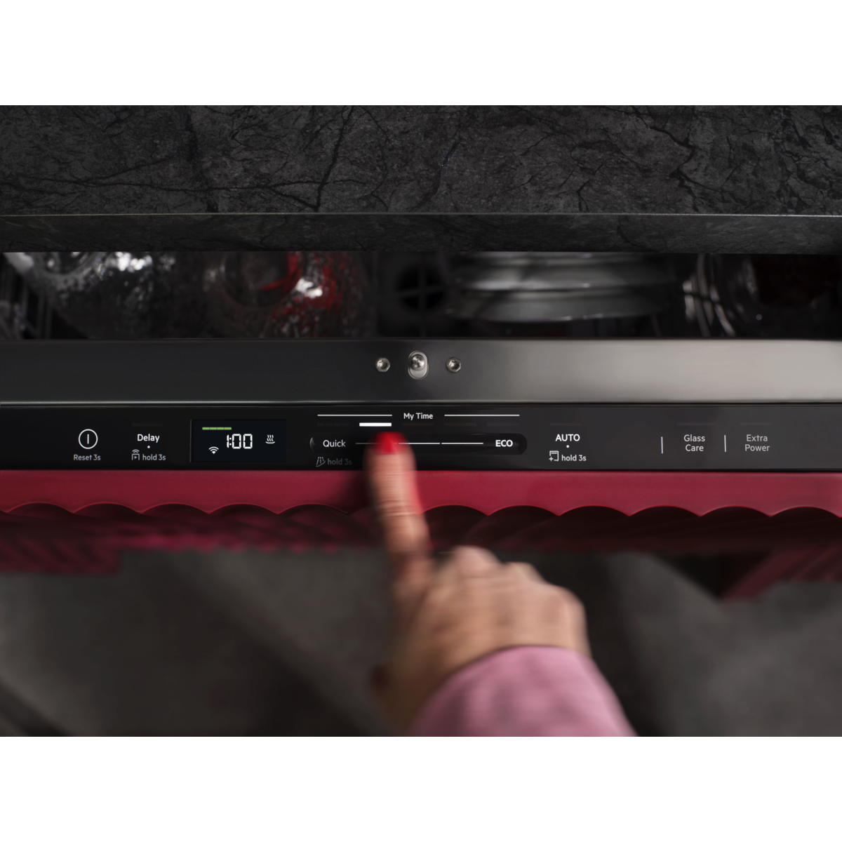 Lorsque vous souhaitez que votre cuisine soit calme pendant que le lave-vaisselle est en marche, activez ExtraSilent sur le panneau de commande ou dans l’application. Cette fonctionnalité réduit le niveau de bruit déjà faible du cycle de 90 ou 120 minutes de jusqu’à 2 dB de plus.