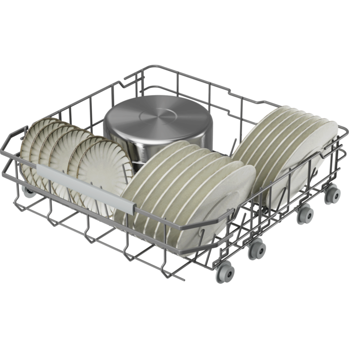 Les nouveaux paniers EasyFlex fluides sont dotés de picots en caoutchouc antidérapants qui protègent les verres et autres articles délicats des chocs. Deux rangées rabattables permettent d’accueillir la vaisselle volumineuse ou atypique. Le tiroir à couvert est même adapté aux fouets et louches.