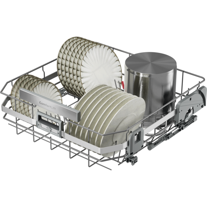 9000 XXL : 5 cm plus haut à l’intérieur mais convient aux meubles de cuisine standards. Paniers multifonctions avec supports pour verres et plaques. Un nettoyage puissant élimine les résidus d’aliments cuits au four. Le système d’eau hautement efficace utilise seulement 8,4 litres d’eau.
