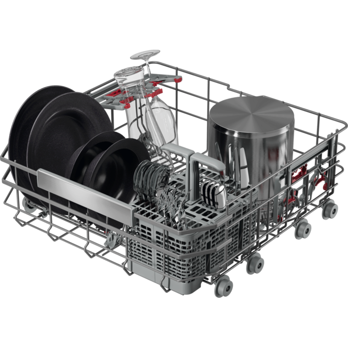 9000 XXL : 5 cm plus haut à l’intérieur mais convient aux meubles de cuisine standards. Paniers multifonctions avec supports pour verres et plaques. Un nettoyage puissant élimine les résidus d’aliments cuits au four. Le système d’eau hautement efficace utilise seulement 8,4 litres d’eau.