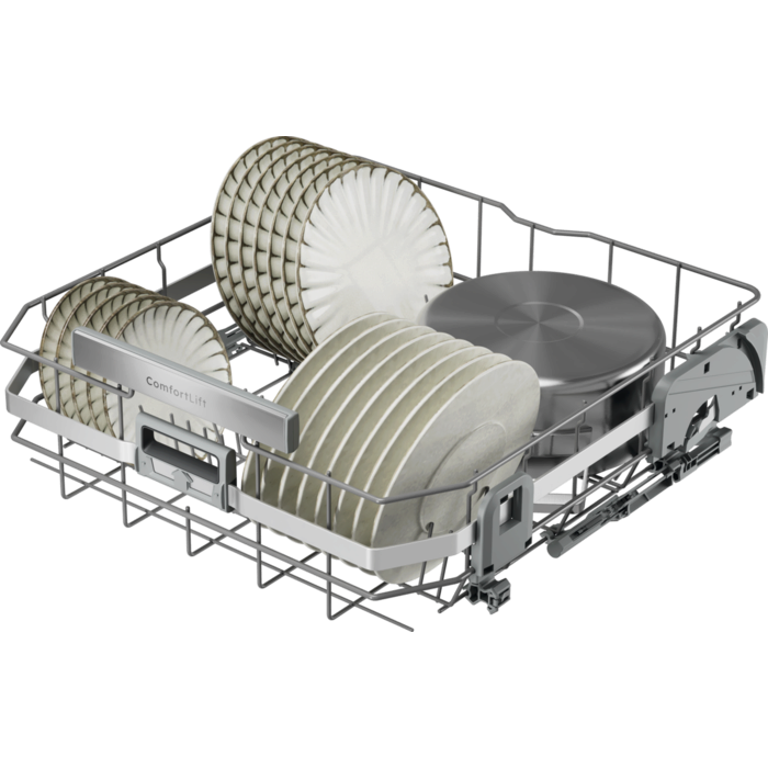 Avec sa haute performance de lavage, le lave-vaisselle élimine facilement les résidus d’aliments tenaces. Des paniers modulables et fluides à sections rabattables sont dotés de supports à verres uniques. Le système d’eau ultra-efficace utilise seulement 8,4 litres par lavage.