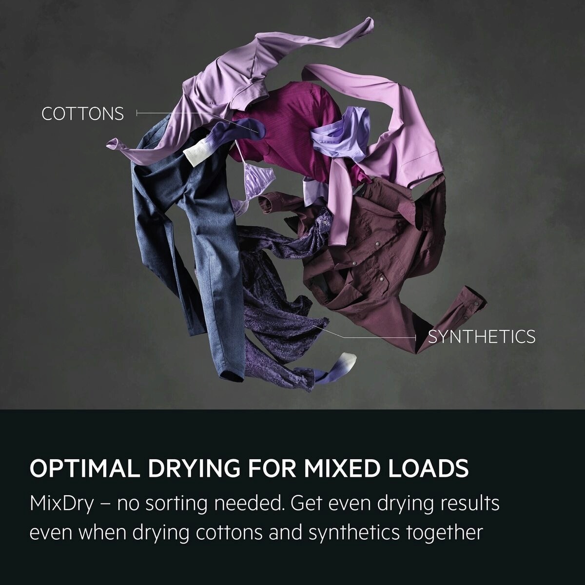 MixDry. Sans tri. Sans effort. Séchez les cotons avec les synthétiques