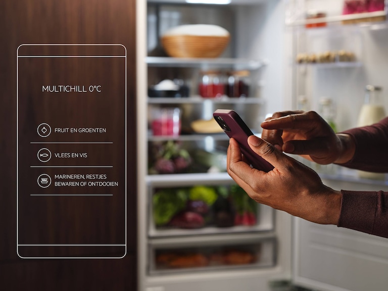 Frigos connectésGrâce à l’application AEG, réglez facilement le tiroir MultiChill pour décongeler, faire mariner ou conserver des restes à 2°C.