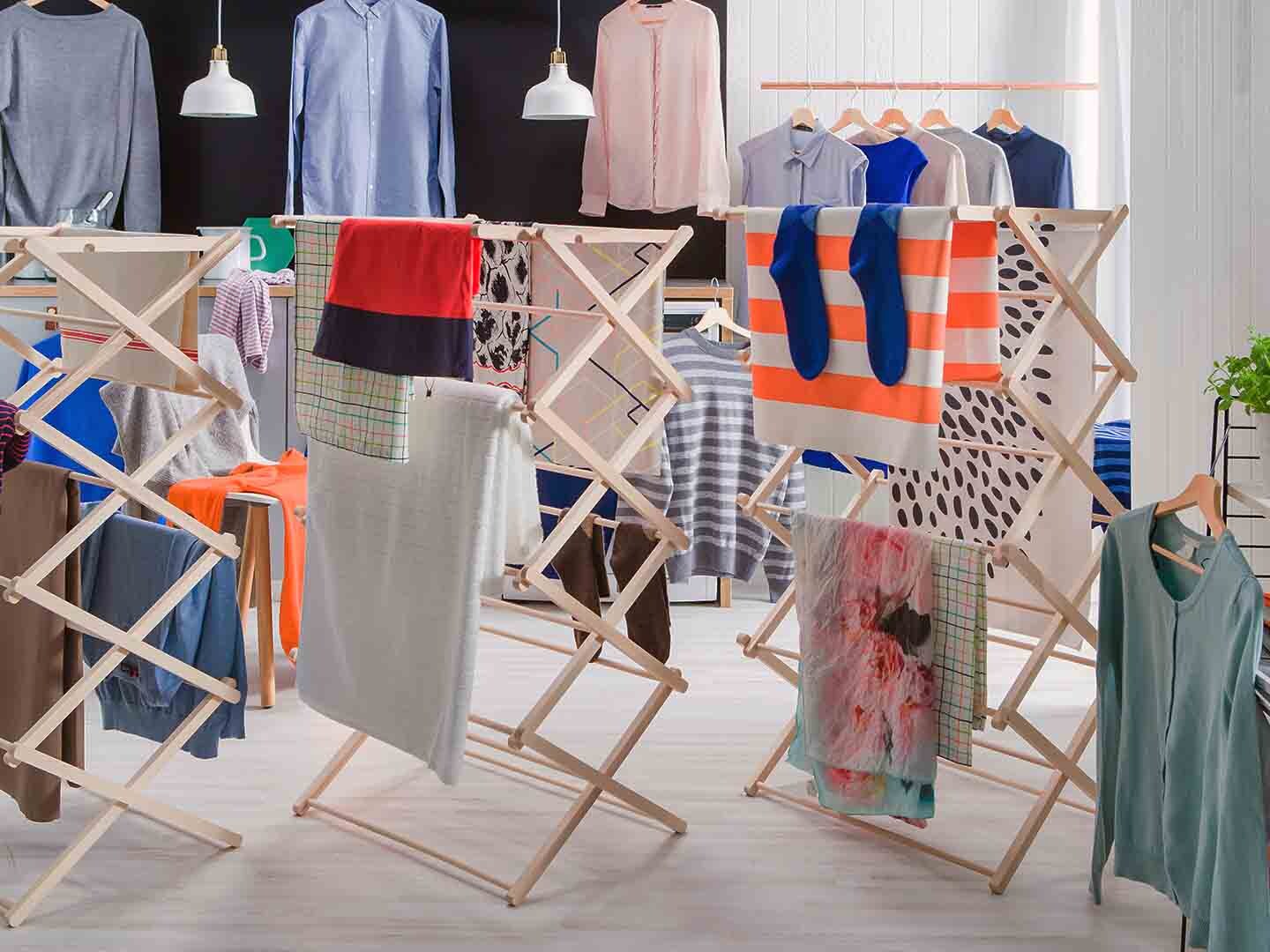 Si vous vivez en appartement ou n’avez simplement pas assez d’espace à l’extérieur, vous devez vous rabattre sur l’étendoir si vous ne voulez pas toujours dépendre du sèche-linge. À l’instar de la corde à linge, un étendoir est à la fois gratuit et durable. Cette méthode est elle aussi adaptée à vos vêtements délicats et entraîne moins de risques de décoloration. L’espace restreint qu’occupe un étendoir est à la fois un avantage et un inconvénient : s’il permet de faire sécher beaucoup de vêtements à la fois, il se révélera rapidement trop petit pour des draps et autre linge de maison. Vous devrez donc trouver d’autres endroits où les faire sécher à l’intérieur. Sachez cependant que le principal aspect à prendre en considération pour cette méthode de séchage est l’endroit où installer votre étendoir.