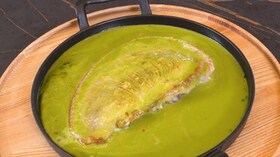 Versez le pil pil dans le plat noir et puis posez le poisson par-dessus