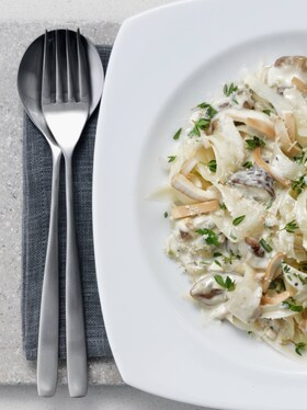 Tagliatelles de salsifis sauce carbonara et châtaignes