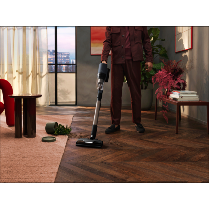 *Mesuré par rapport au précédent aspirateur sans fil 8000 avec un bac à poussière chargé de poussière DMT (test standard), selon la norme IEC 62885-4 ed.1