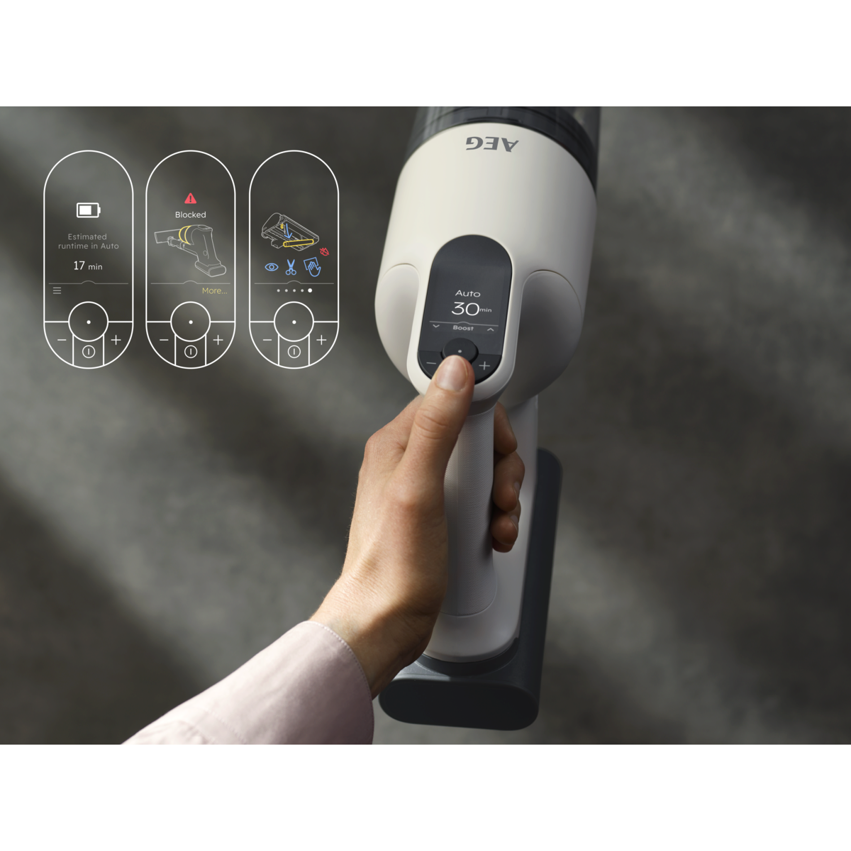 Perfection longue durée : l'AEG 9000 est le seul aspirateur sans fil combinant une autonomie inégalée à une capacité de ramassage de la poussière pouvant atteindre 100 %*. Il est équipé d'un moteur de précision doté de la technologie Inverter.